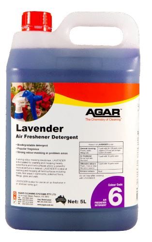 LAVENDER is a strong odour-masking detergent with the cleaning action needed to remove offensive and putrid soilage matter. It has a lavender perfume and is ideal for washing and mopping contaminated floors and hard surfaces including polished floors, tiles, fittings, glass and walls. LAVENDER is ideal for use as an air-freshener where a reodorant is required. The perfume in