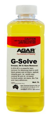 G-SOLVE will dissolve grease, chewing gum, tar, adhesives and oily stains