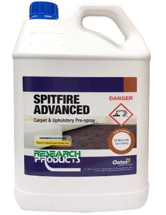 As a pre-spray it is suitable for use on regular and new low-profile style carpets and upholstery to remove greasy, stubborn stains. Suitable for wool, wool blend and olefin and satin treated nylon fibre carpets. SPITFIRE ADVANCED rinses freely and allows more dirt and greasy soil to be removed leaving it fresh and brilliantly clean.